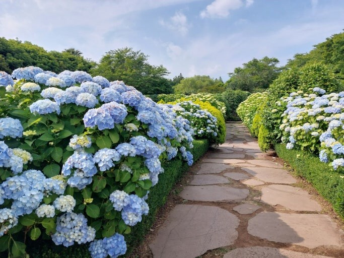 Begin your journey at Camellia Hill, one of Jeju’s most picturesque gardens, known for its seasonal flowers and beautifully landscaped walking paths.