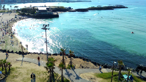 A stunning white sand beach on Jeju’s east coast, Woljeongri Beach is famous for its turquoise waters, scenic walking paths, and charming cafes. Perfect for relaxing, taking photos, and enjoying the seaside atmosphere.
