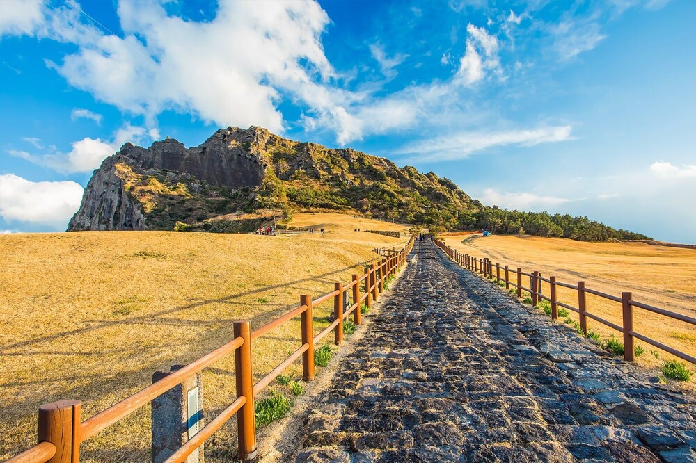 One of Jeju’s most iconic landmarks, Seongsan Ilchulbong is a volcanic tuff cone rising dramatically from the sea. A short hike rewards you with breathtaking panoramic views of the ocean and surrounding landscape — a must-see spot in Jeju.