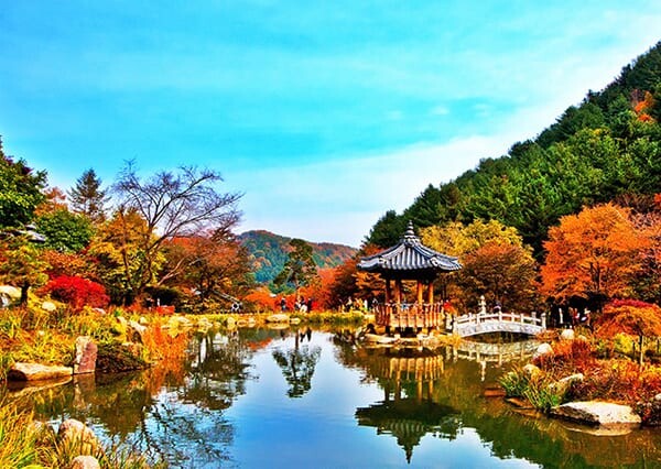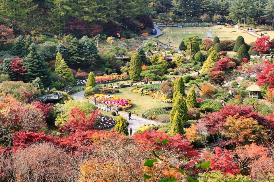 The Garden of Morning Calm is a large botanical garden designed to showcase the beauty of Korean nature and traditional aesthetics. It features themed gardens, colorful flowers, and carefully landscaped paths that change throughout the seasons. The calm and well-maintained environment makes it an ideal place for leisurely walks, nature appreciation, and memorable photos.