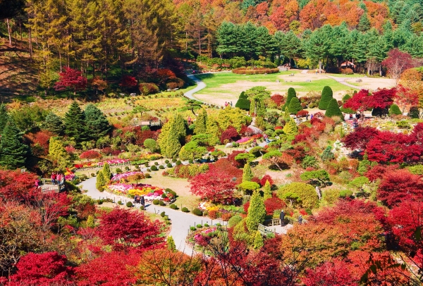 The Garden of Morning Calm is a large botanical garden designed to showcase the beauty of Korean nature and traditional aesthetics. It features themed gardens, colorful flowers, and carefully landscaped paths that change throughout the seasons. The calm and well-maintained environment makes it an ideal place for leisurely walks, nature appreciation, and memorable photos.